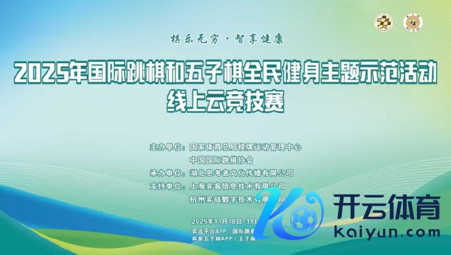 2025年11月18日至19日体育集锦,“棋乐无尽·智享健康”2025年外洋跳棋和五子棋全民健身主题示范行径——线上云竞技赛得胜举行。本次赛事由国度体育总局棋牌引导科罚中心专揽,湖北想考者文化传播有限公司经办,依托“弈战平台APP”和“弈客五子棋APP”在线开展,改造实施“健身健康学问竞答+个东说念主赛”双轨积分赛制,共眩惑世界273名棋类青睐者参与,不雅赛东说念主次冲突一万,机动展现了智商引导在股东全民健身、促进全龄健康方面的鄙俚影响力。