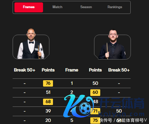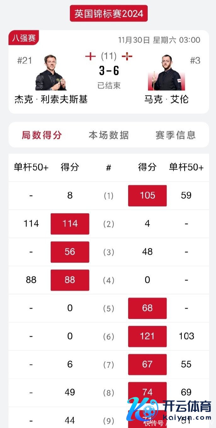 第四局,利索夫斯基开场连输三局之后终于有所斩获,他打出单杆,55分,72-32/扳回一局,比分追成1-3。第五局,苟简的局间休息回归之后,利索夫斯基又打出单杆63分,85-23再扳一局,比分追成2-3。
