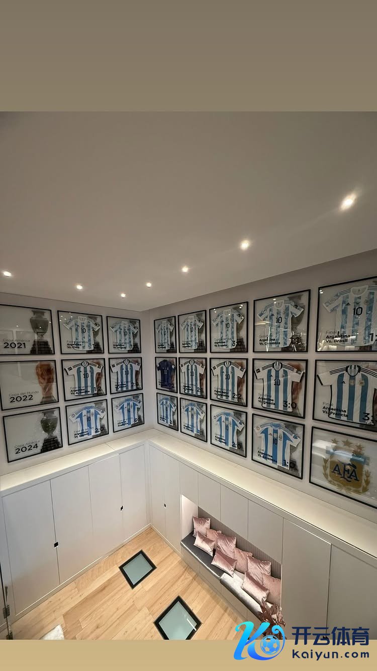 梅西也在本日晒出了我方家中陈设整皆的近3届国度队大赛落场版球衣保藏墙,冠军奖杯记号也格外显眼。