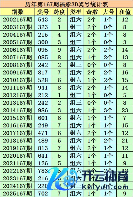 开奖追想:福彩3D第2025167期奖号:702体育录像/图片。