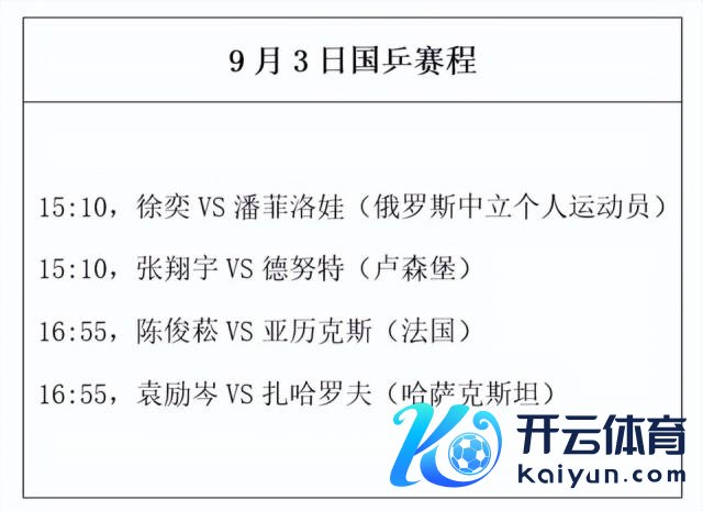 凭证安排,本站单打阅历赛唯有三轮,是以以上 4 位国乒选手只须辞别再赢 1 场就不错拿到正赛门票,接下来 9 月 3 日的对阵安排为: