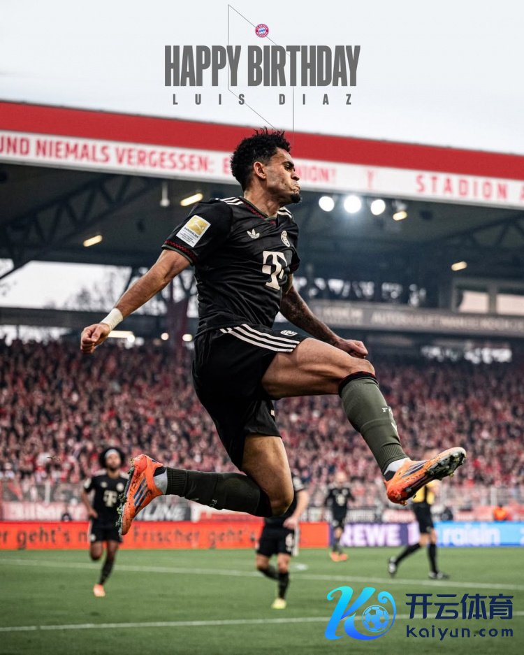 拜仁官方社媒晒出为迪亚斯制作的寿辰海报,并配文:路易斯·迪亚斯,寿辰纷扰!🥳今天咱们统统东谈主齐在为你庆祝!❤️🤍