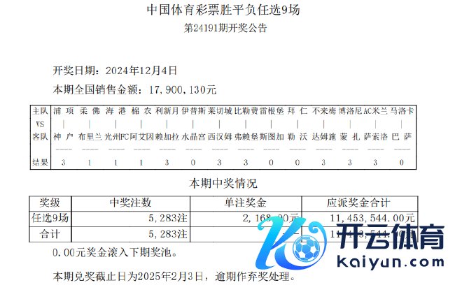 本期兑奖箝制日为2025年2月3日体育录像/图片,过时作弃奖管束。