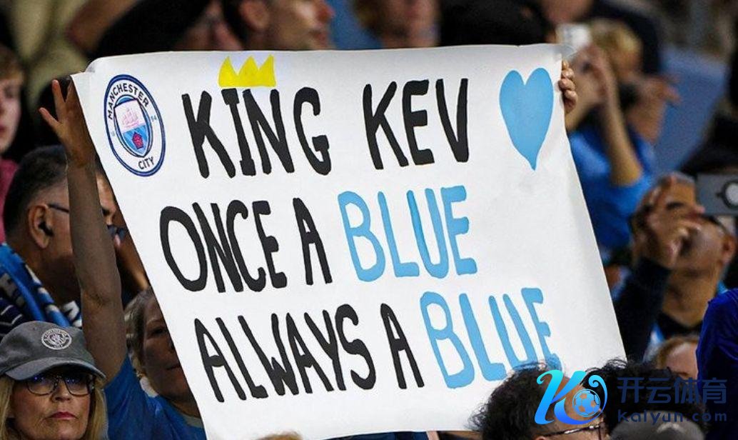两边球员进场,德布劳内受到了曼城球迷大肆的接待。看台上,球迷展示了他们用心准备的宽绰tifo,上头写着“king kev(国王凯文)”、“一日为蓝,终身为蓝”。德布劳内看到后有些鼎沸。