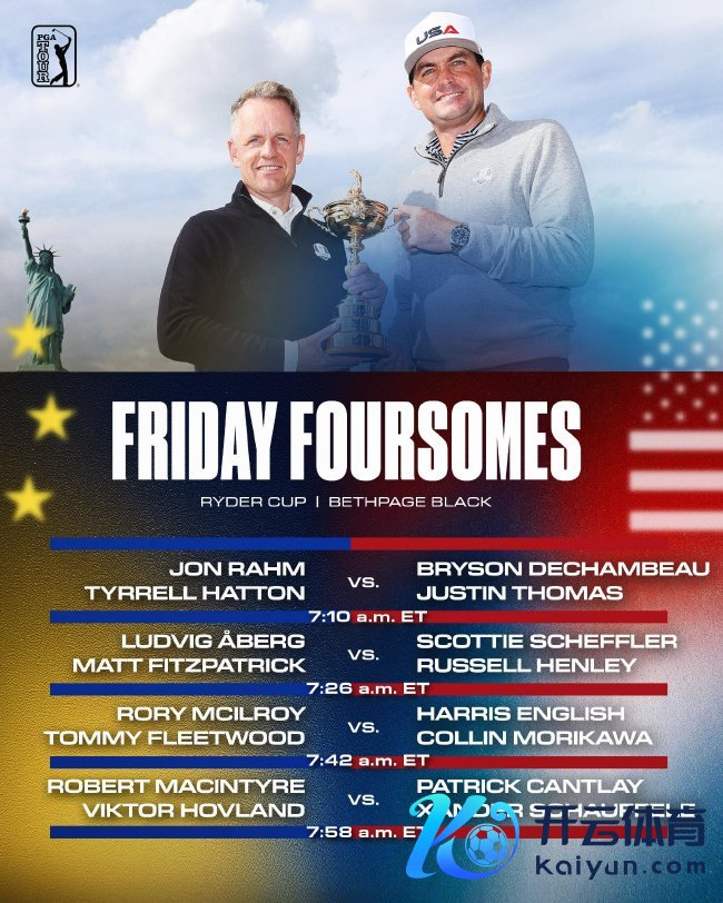“咱们虽然但愿有一个好的开局,”欧洲队队长卢克-唐纳德说说念,“咱们知说念,比洞赛必须有一个好的开局。这些家伙一都获取了许多得胜。他们知说念若何取胜。他们是一双雄壮的搭档,相处融洽。咱们很昂扬派他们先出场。”