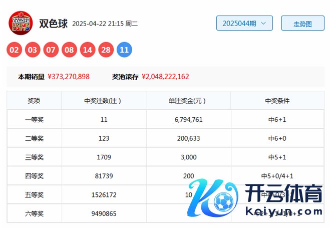 双色球第2025044期开出奖号:红球02、03、07、08、14、28亚洲球盘网体育信息,蓝球11。当期红球三区比为4:1:1,奇偶比为2:4,和值为62,跨度为26,蓝球开出在第三区。