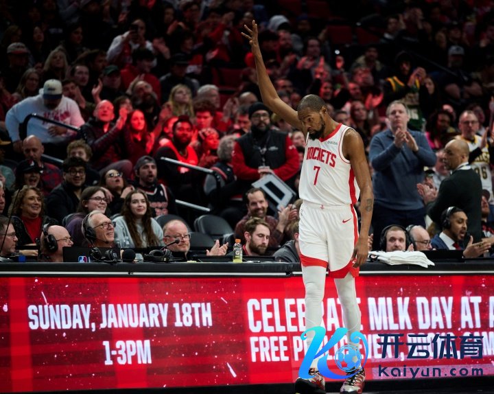 诱骗者播音员致意杜兰特,和杜兰特持手,杜兰特随后和斯普利特拥抱,诱骗者现场不雅众饱读掌致意,KD单手指天回以针织